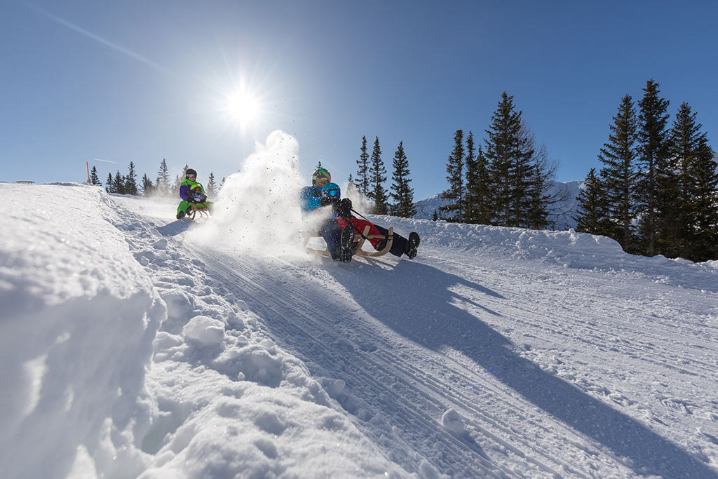 Auch für Rodler gibt es im Skigebiet tolle Rodelbahnen. Die 3 km lange Rodelbahn in Fiss erreicht man über die Mittelstation der Schönjochbahn. Vom Steinegg aus führt die leichte Rodelstrecke über die Kuhalm wieder an die Talstation der Schönjochbahn.